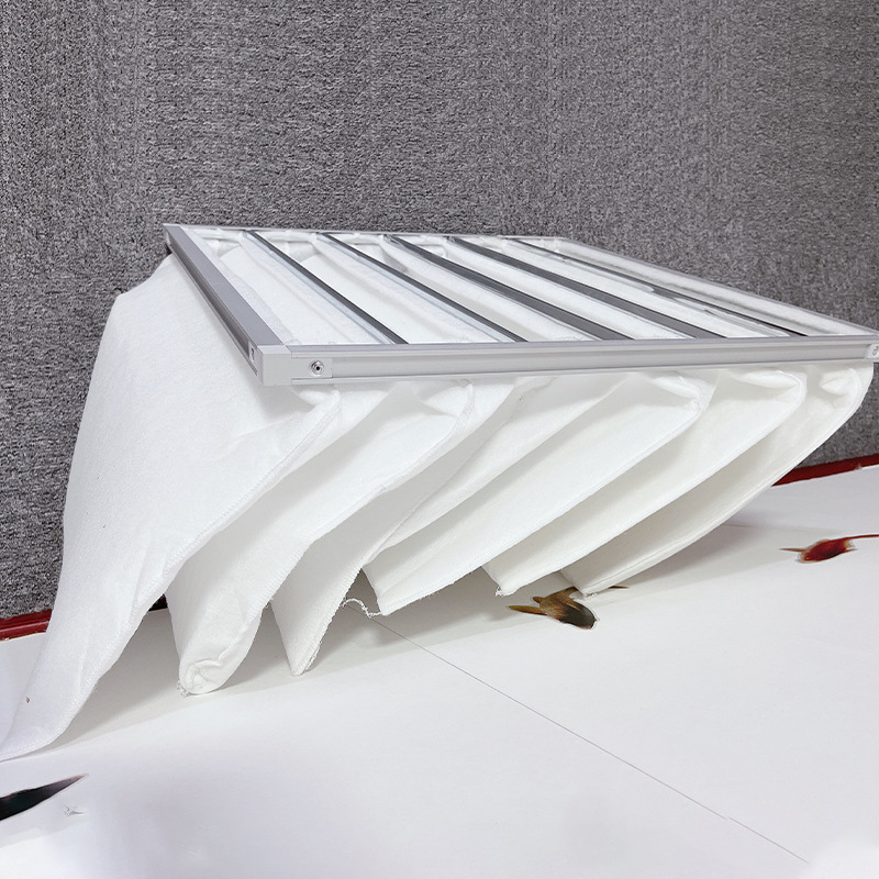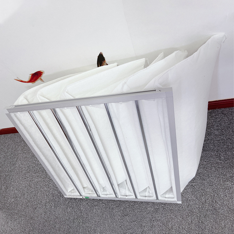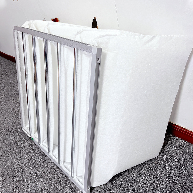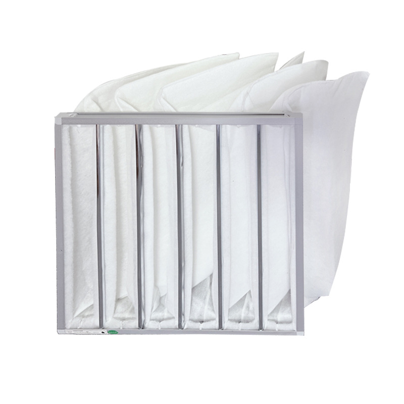 主要用途: 初效袋式过滤器一般用于空调系统的初级过滤,以保护系统中下一 级过滤器和系统本身,在对空气净化洁净度要求不严格的场所,经初级袋式过滤器处理后的空气可直接送至用户。初级袋式过滤器采用无纺布/静电棉袋式造型,配以各种金属外框(镀锌、铝合金型材滤料一般所用的滤材多为G3、G4两种。初效袋式过滤器被广泛应用于中 央空调通风系统、制药、医院、电子、食品等工业净化中,初效袋式过滤器还可作为中效空气过滤器的前端过滤,以减少中效空气过滤器的负荷,延长其使用寿命。