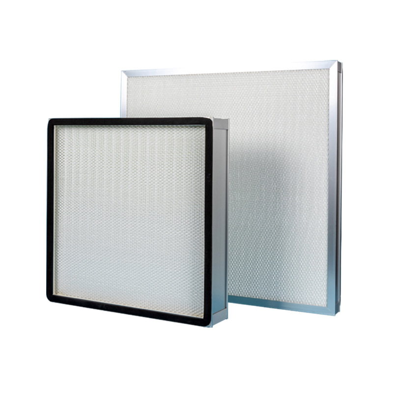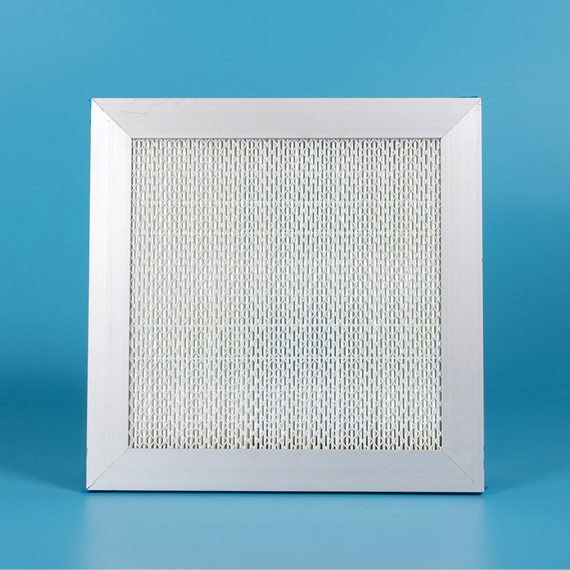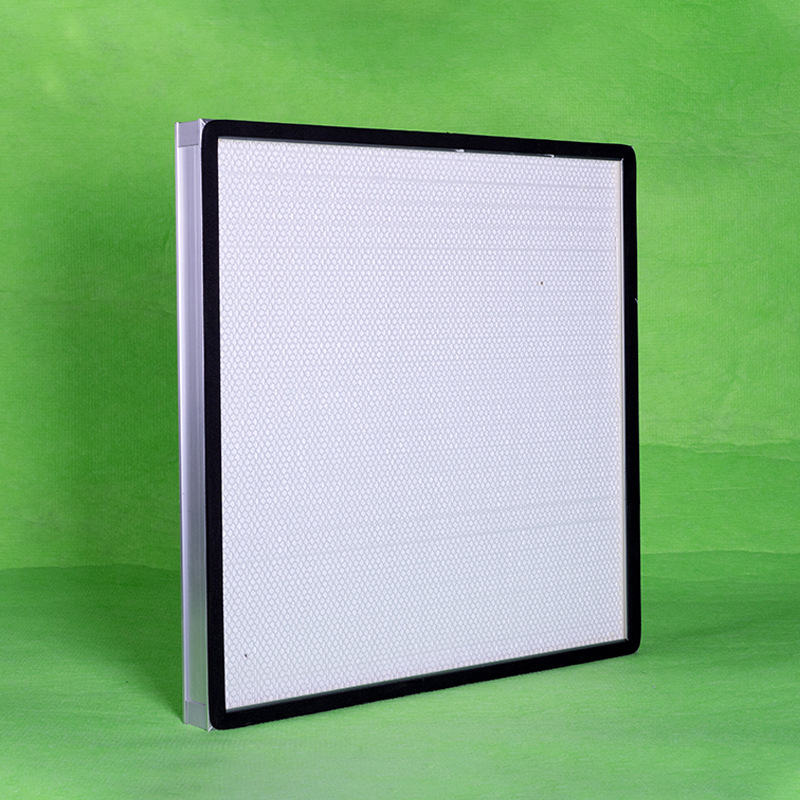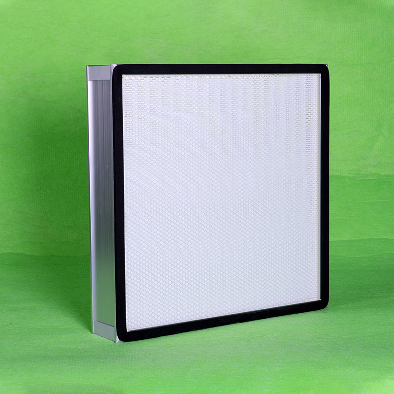 铝框无隔板高 效空气过滤器采用无隔板设计降低运行成本,无隔板的热塑性隔胶可以确保相同褶层间距,保证气流通过,达到高容尘量充分利用了过滤器整个深度的滤材;重量轻,结构小巧紧凑;铝外框经阳极处理增加强硬度及耐久的防腐性。以环保树脂或PU密封于铝挤型框架达到完全密封。无隔板高 效过滤器在进风面和出风面都可以加装喷塑的护面网,以保护滤纸不被损坏;专用玻璃纤维高 效过滤纸作为滤材,均被特殊密合剂密封,确保滤材四周气密: 标准无隔板过滤器可耐温90摄氏度; 对>0.3um颗粒的过滤效率在99.995%以上。